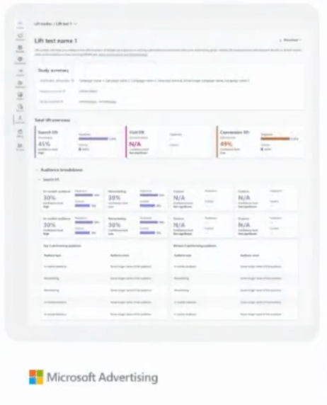 Measure ad effectiveness with search lift, visit lift, and conversion lift.