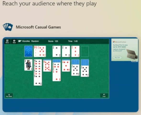 You can leverage the games ad placement package. This targets audiences on the Microsoft casual games. In average Microsoft has around 14M active users per month with an average game time of 66 minutes.