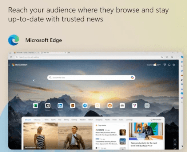 You can leverage the homepage ad placement package. This targets audiences on the Microsoft Edge home page and new tab pages. This enhancement will be primarily for the US market.
